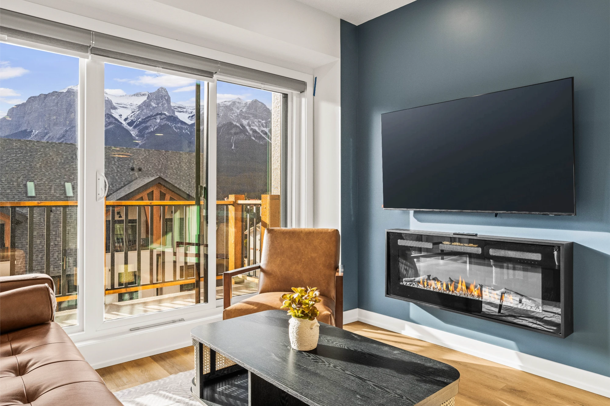 Perfect for couples or small groups looking to unwind in the heart of Canmore. With warm finishes, an inviting fireplace, and an open living area that extends to a private balcony, this suite feels like a true mountain retreat. Take in the breathtaking views, enjoy a slow morning coffee, or relax after a day exploring Banff and the Bow Valley.